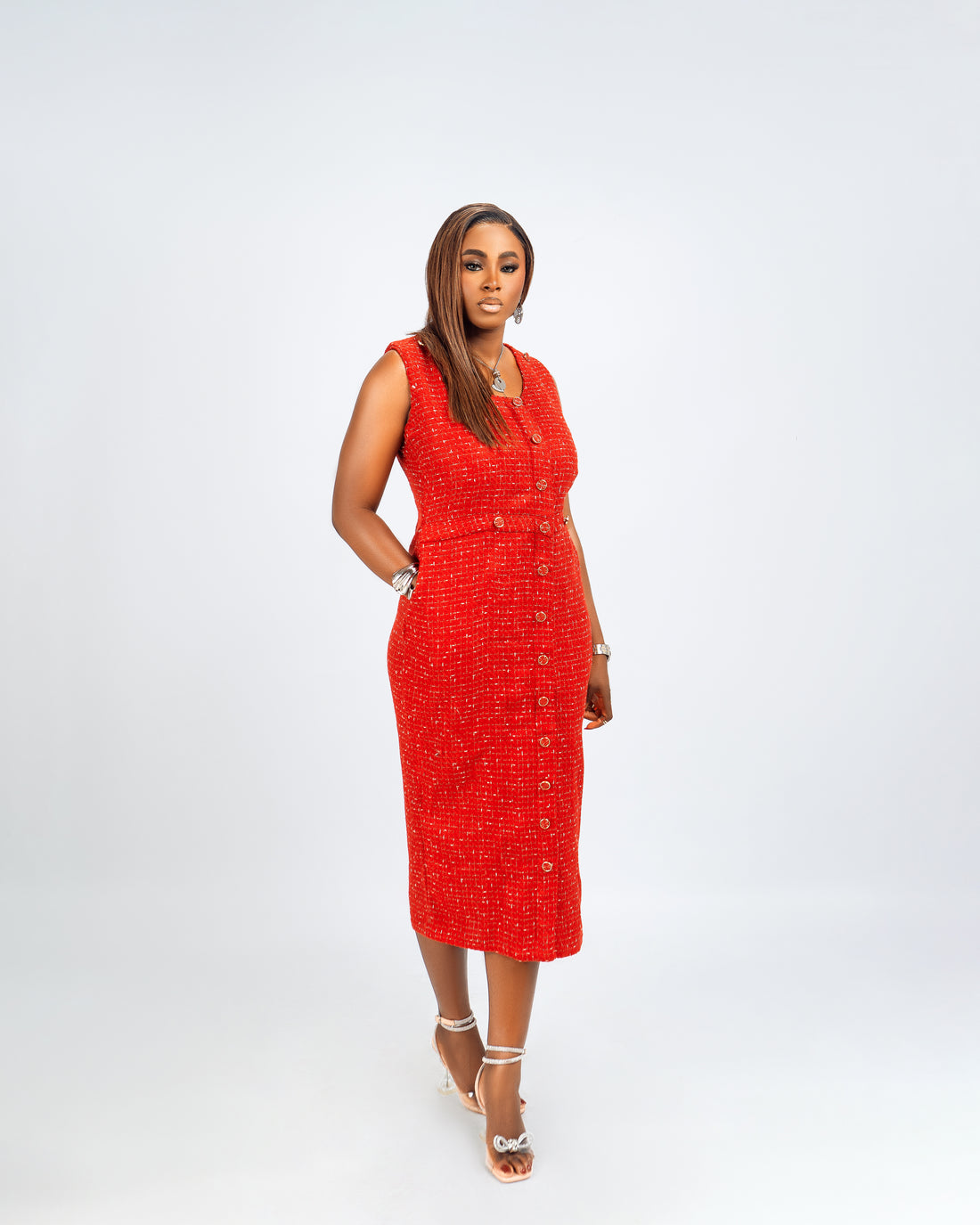 Introducing the "Fitz Tweed Dress" dress, a masterpiece of structured elegance and deep, captivating color....
