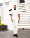 Step into effortless sophistication with our Classic All-White Two-Piece Set for men. This set features a round-neck short-sleeve tee and perfectly tailored trousers, both designed for comfort and style. Whether you're heading out for a casual event or a stylish hangout, this outfit delivers timeless appeal.