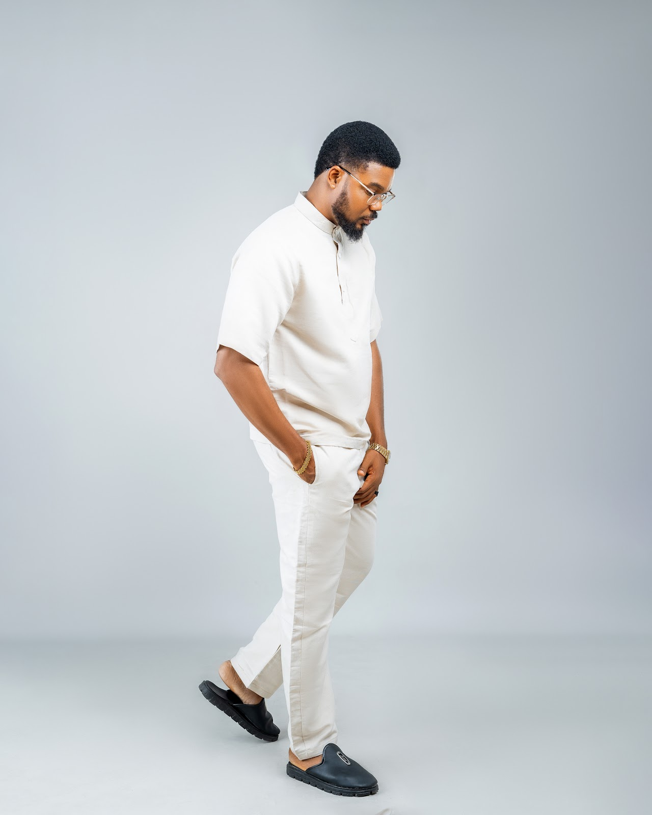 MEN'S CREAM LAPEL SHORT SLEEVE SHIRT SET