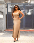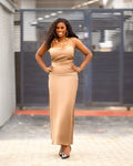 Make a bold yet graceful statement with our Mocha Satin Two-Piece Set, a luxurious ensemble that redefines minimalist elegance. This set features a chic satin camisole with a soft neckline and spaghetti straps, paired with a flowing high-waist maxi skirt that hugs in all the right places and drapes effortlessly to the floor.