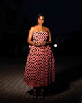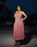 Turn heads in our Rose Strapless Dress, designed for the woman who loves a touch of vintage charm and modern elegance. This dress with classic black polka dots features a flattering strapless neckline and a flowy, waist-cinched silhouette that’s perfect for evening outings, romantic dates, and classy events..