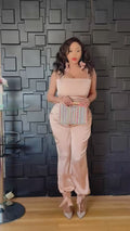 Elevate your style with our TUBE TOP SATIN PANT SET. Made with luxurious satin fabric, this set features a chic tube top that accentuates your curves and comfortable wide-leg pants for easy movement. Perfect for any occasion, this set is a must-have for any fashion-forward individual.