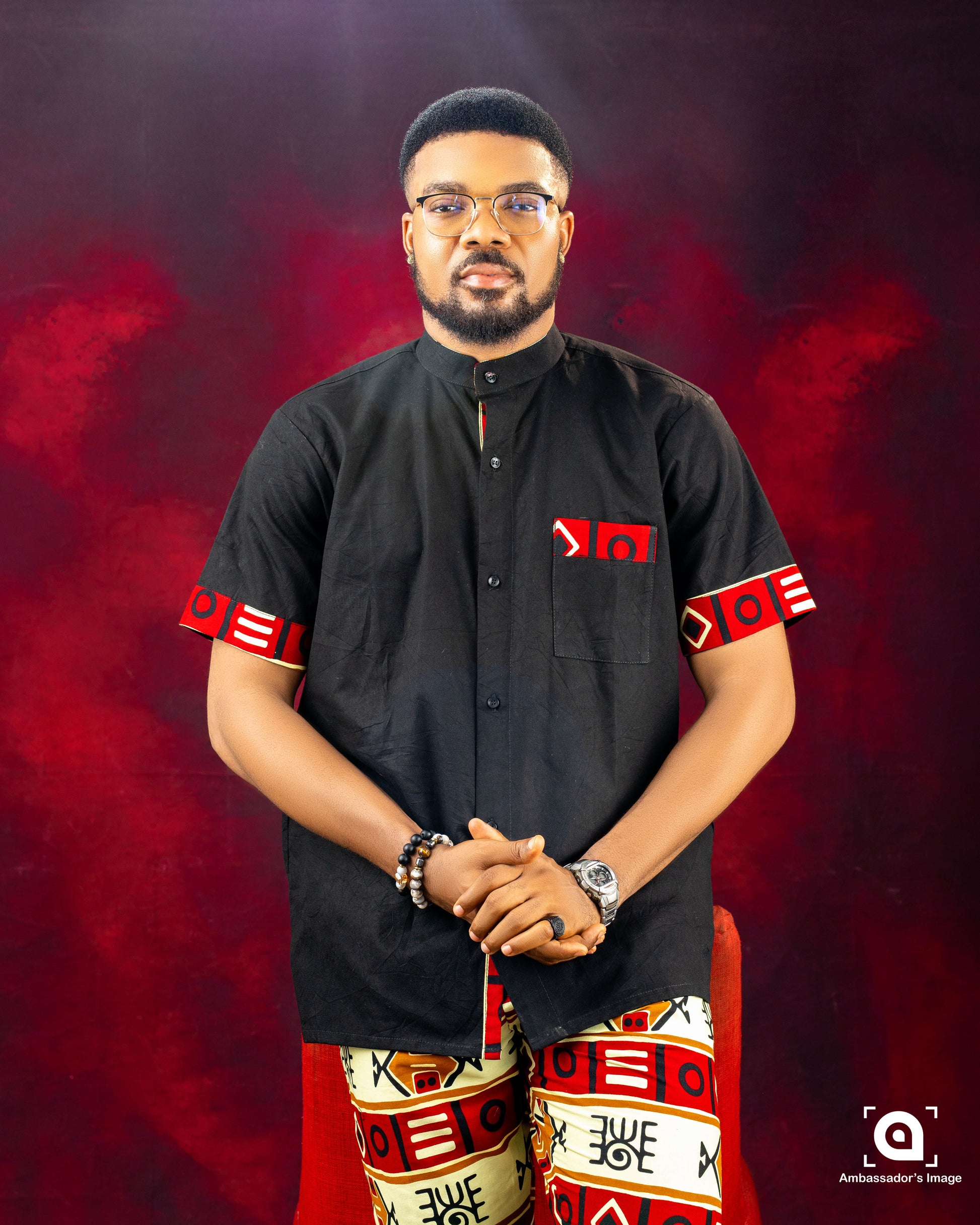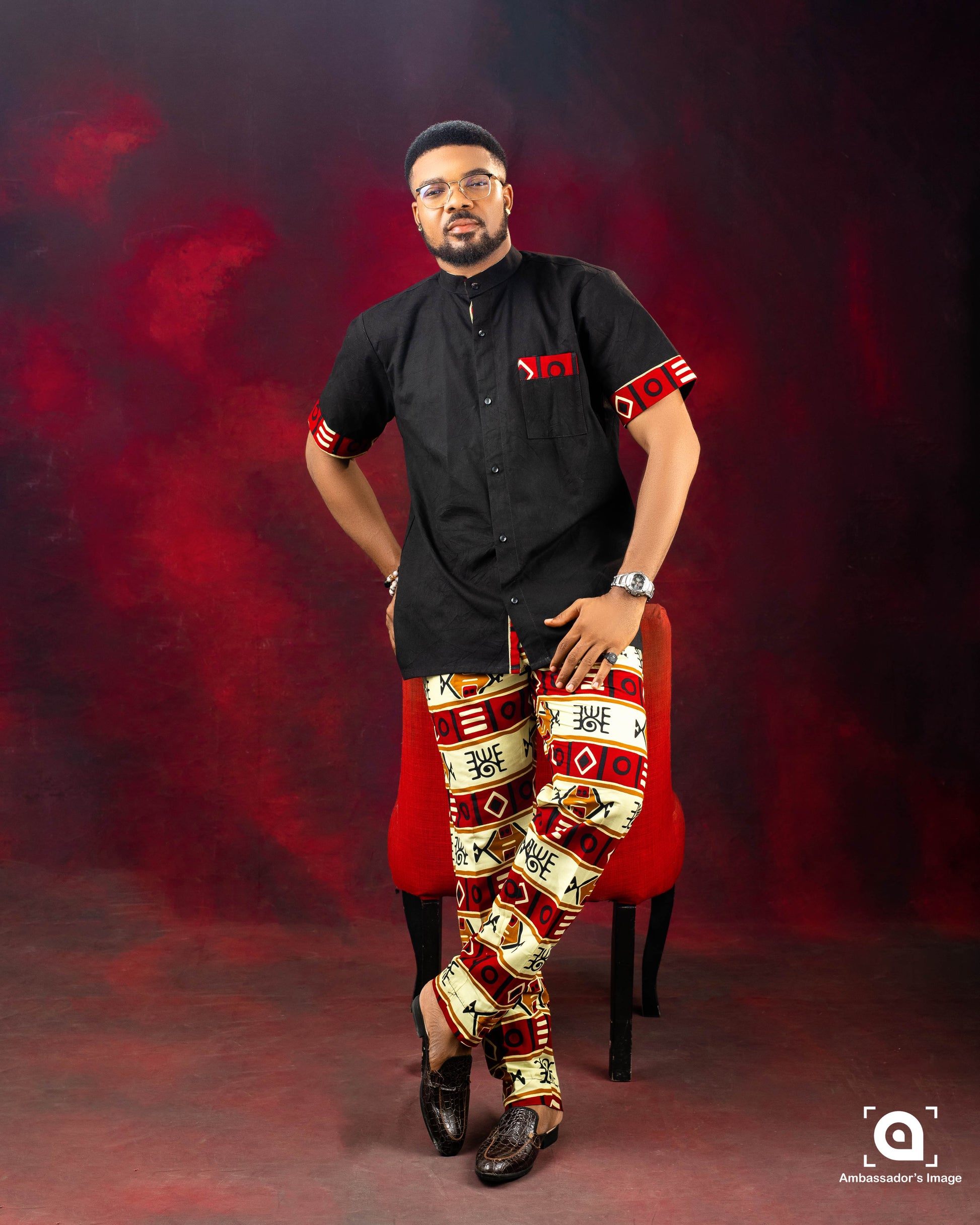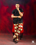 Step out in confident Afro-urban flair with our Urban Two-Piece Set, crafted for the modern man who appreciates culture, comfort, and charisma. This look combines a crisp white mandarin-collar shirt with bold tribal print accents on the sleeve cuffs, chest pocket, and inner placket—paired with vibrant, tailored Ankara pants that deliver eye-catching detail from every angle.